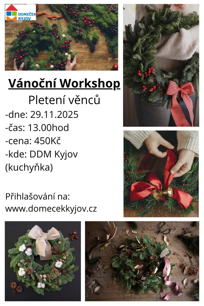 Zveme všechny na Vánoční pletení věnců, které proběhne u nás v DDM Kyjov. Vytvoříte si krásný věnec dle vlastních představ, z přírodních materiálů a v příjemné atmosféře dalších žen.